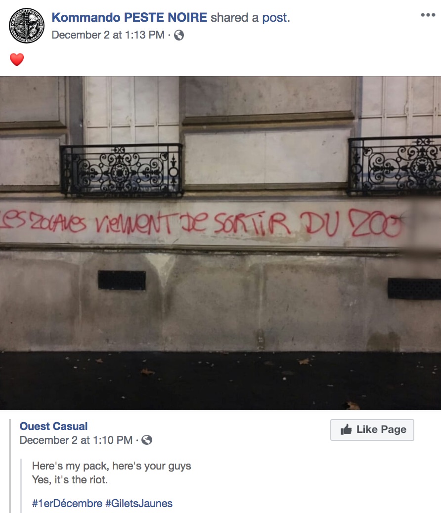 Peste Noir has also showed support for the Yellow Vest movement on Facebook: