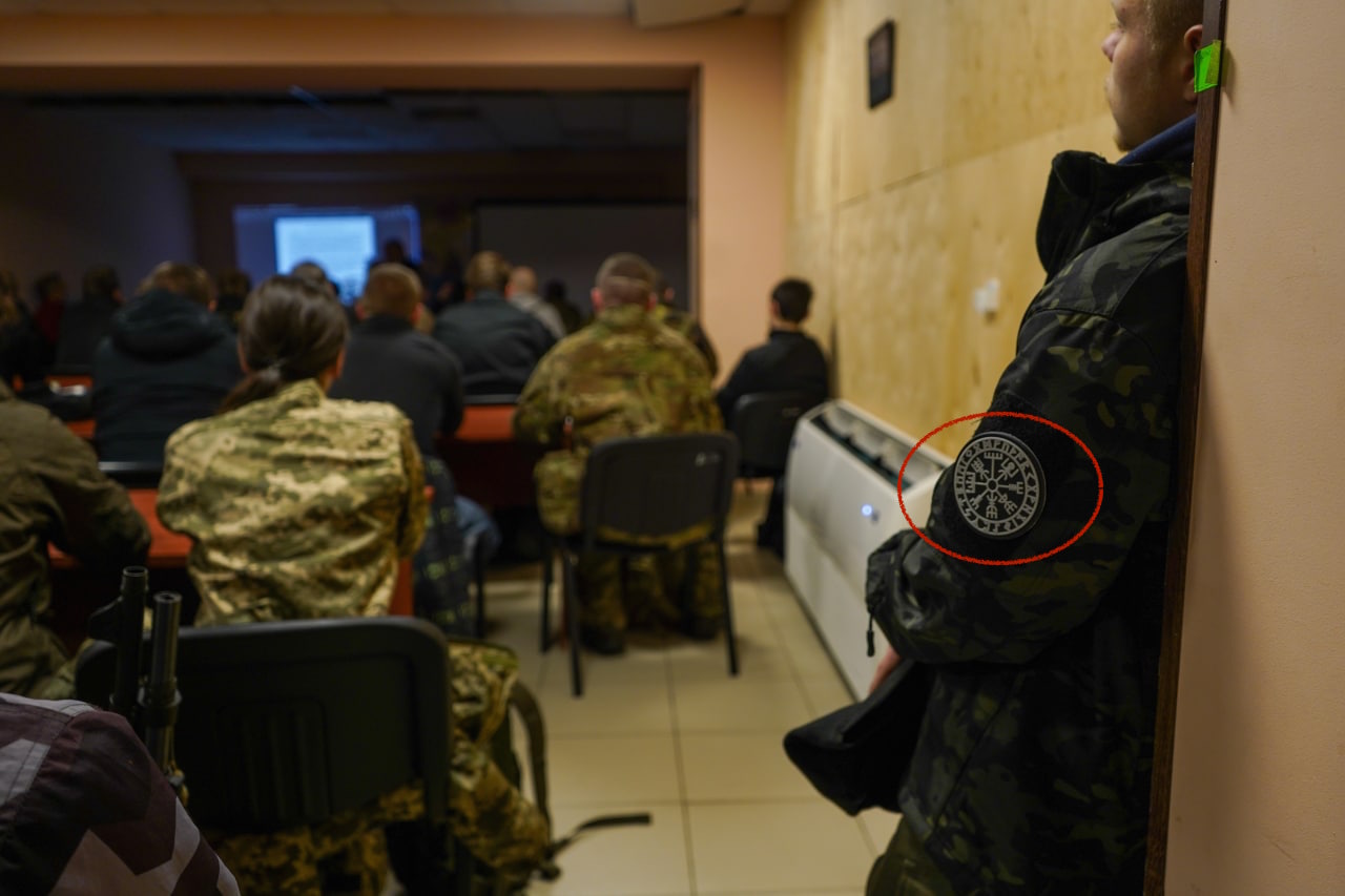 The speaker, Mikhailenko, was one of Biletsk’s closest associates in the organization, Patriot of Ukraine, where he was engaged in holding seminars. In 2011, Igor Mikhailenko, together with Andriy Biletsky and Vitaliy Knyazhesky, were arrested on charges of robbery and the attempted murder of Kharkiv journalist Sergey Kolesnik. Esteemed as a political prisoner, Mikhailenko was released in February of 2014 under the so-called “Maidan amnesty”. In the fall of 2014, Biletsky, who entered politics and became a deputy in Ukraine’s Parliament, appointed Mikhailenko to become the leader of the Azov National Guard Regiment, which was truly the Azov Battalion but integrated into the Ukrainian National Guard. In 2018 Mikhailenko became the head of the National Militia, a paramilitary that sprung out of the Azov Battalion. National Militia, on its own website, described their objective as such: