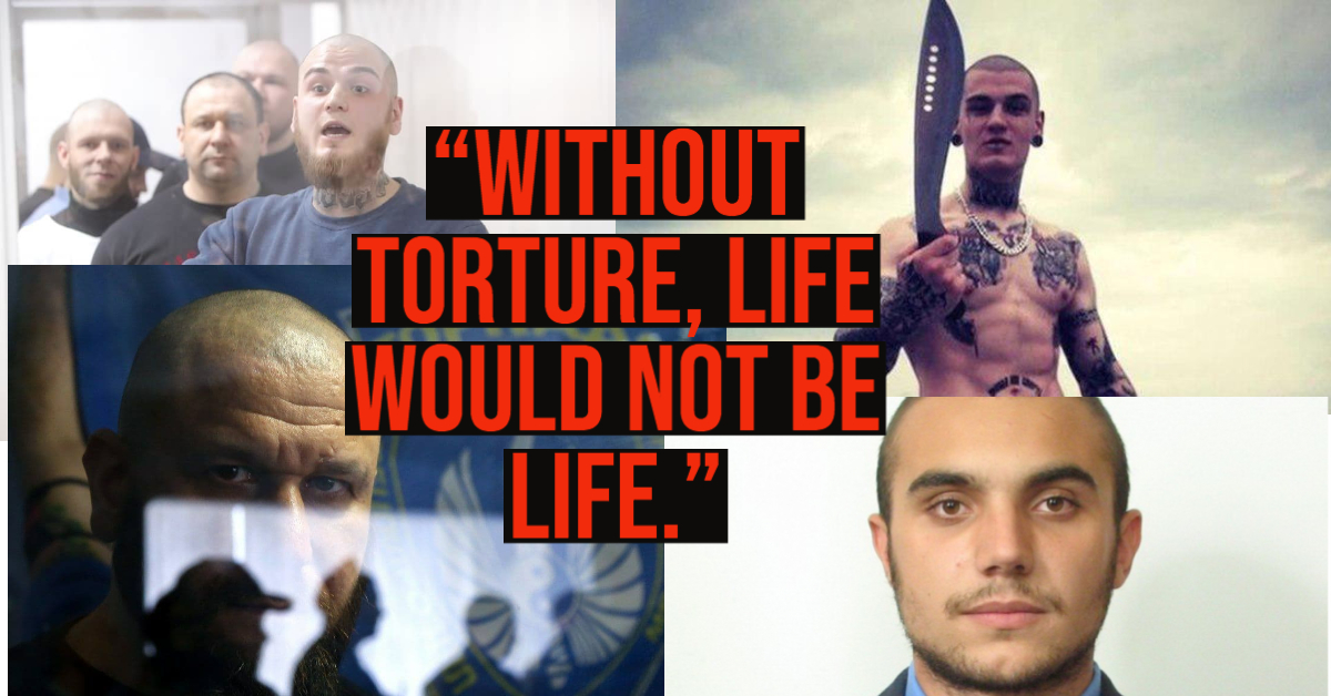 Daniil Lyashuk (top left and top right), Anatoly Plamadyal (bottom left) and Nikita Kust. All criminals who conducted sexual torture and murder, and who Ukraine released from prison. The quote in the middle is by Daniil Lyashuk