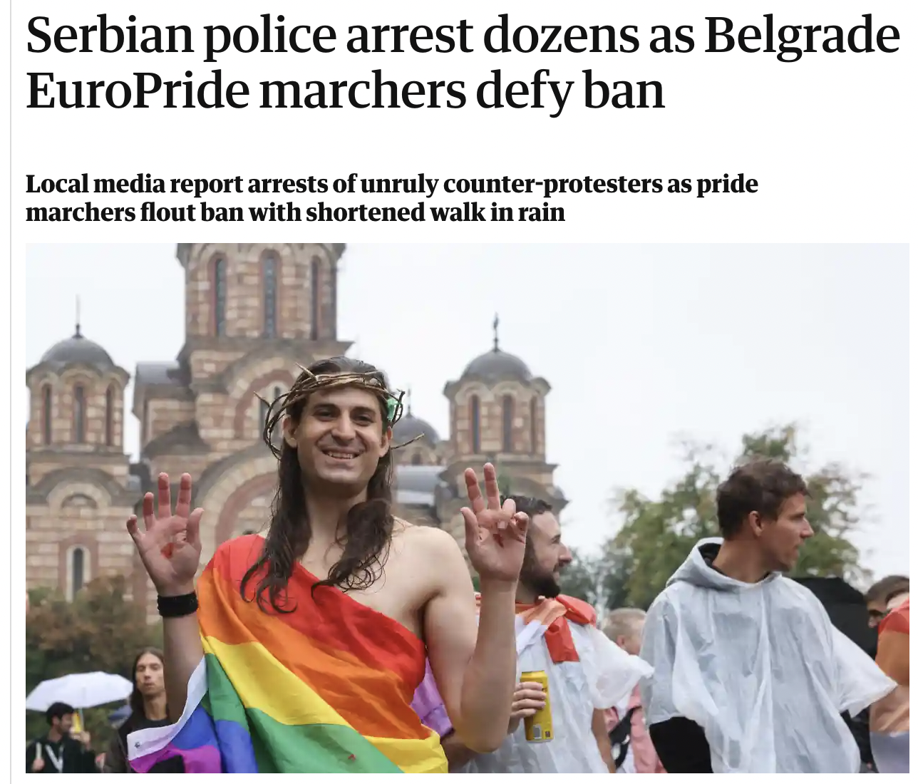 The Guardian headlined a article on the clashes between police and Christian demonstrators with a photo of mocker:
