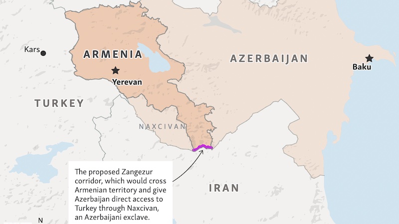 In 2020, as part of a ceasefire deal, both Azerbaijan and Armenia agreed to open a route through Armenia, supervised by Russian officials. But both Pashinyan and Aliyev abandoned this idea. In August of 2025, Armenia agreed to lease the land for 99 years to America, which will hire contractors to run the route.