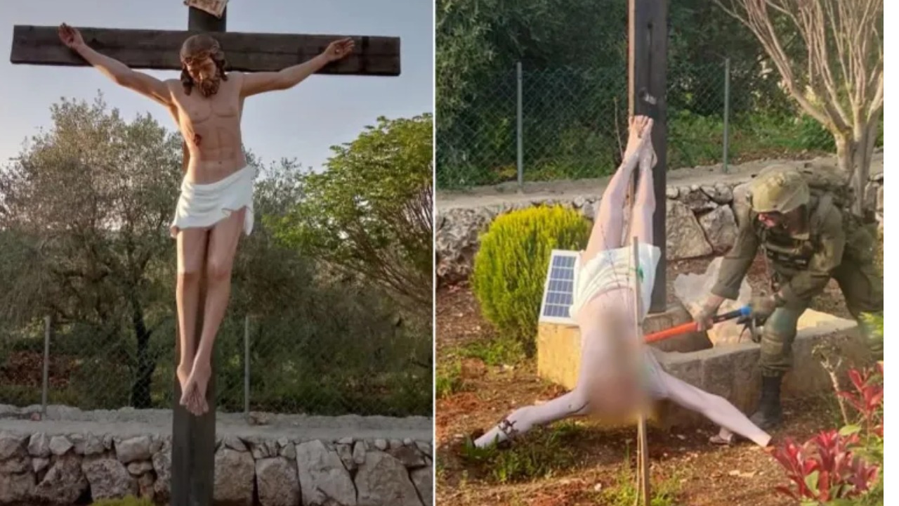 An image showing an IDF soldier in uniform smashing a statue of Jesus in southern Lebanon spread rapidly online on Sunday afternoon, drawing condemnations across social media.