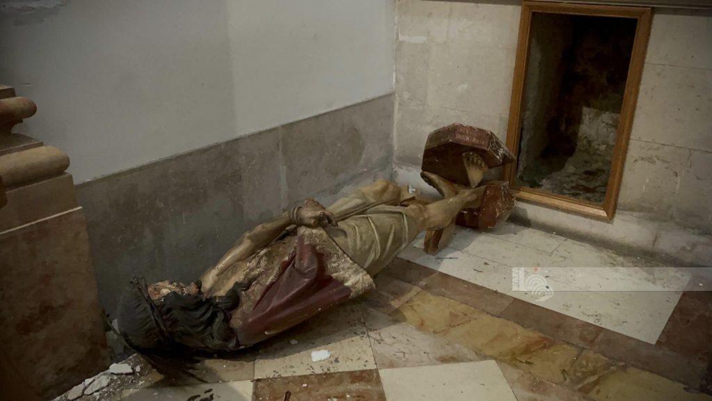 This is similar to what happened in Jerusalem in 2023. Israeli settlers vandalized a church in the Old City of Jerusalem, smashing a statute of the condemned Jesus and attempted to set the church on fire. Here was the aftermath: